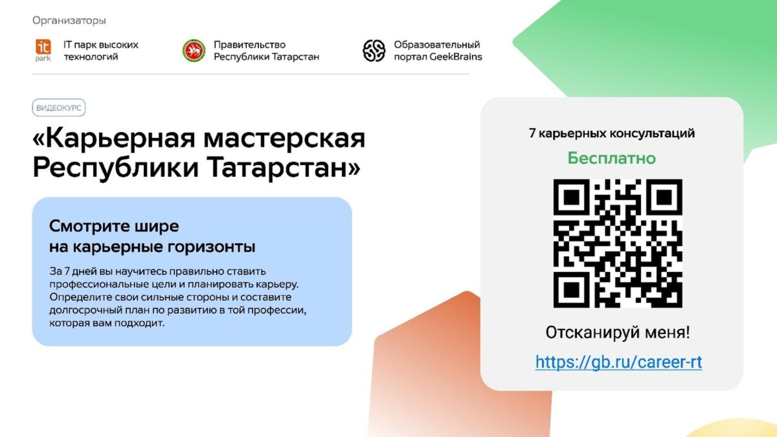 A free professional orientation program "Career Workshop" has been launched in Tatarstan. The project is organized by the Ministry of Digital Development of Public Administration, Information Technologies and Communications of the Republic of Tatarstan together with the educational platform GeekBrains and the state autonomous institution Technopark in the Field of high Technologies IT Park.