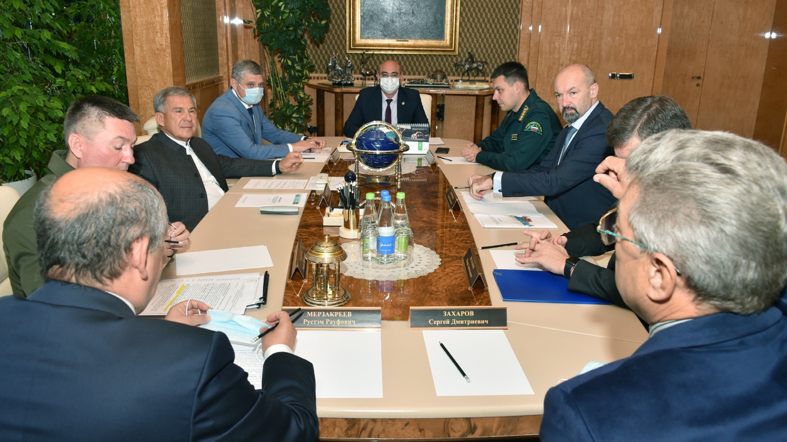 Сегодня в Кабинете Министров РТ прошла встреча Президента РТ Рустама Минниханова с заместителем министра природных ресурсов и экологии РФ Сергеем Аноприенко, сообщается на официальном сайте Правительства РТ. В мероприятии также приняли участие глава Федерального агентства лесного хозяйства Иван Советников, руководитель Федеральной службы по гидрометеорологии и мониторингу окружающей среды Игорь Шумаков и министр экологии и природных ресурсов РТ Александр Шадриков и др.