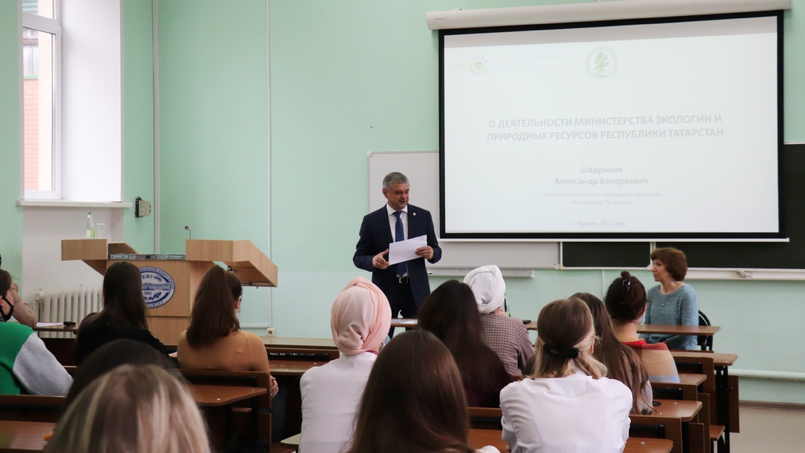 Сегодня министр экологии и природных ресурсов Республики Татарстан Александр Шадриков провел лекцию в институте экологии и природопользования Казанского (Приволжского) федерального университета.