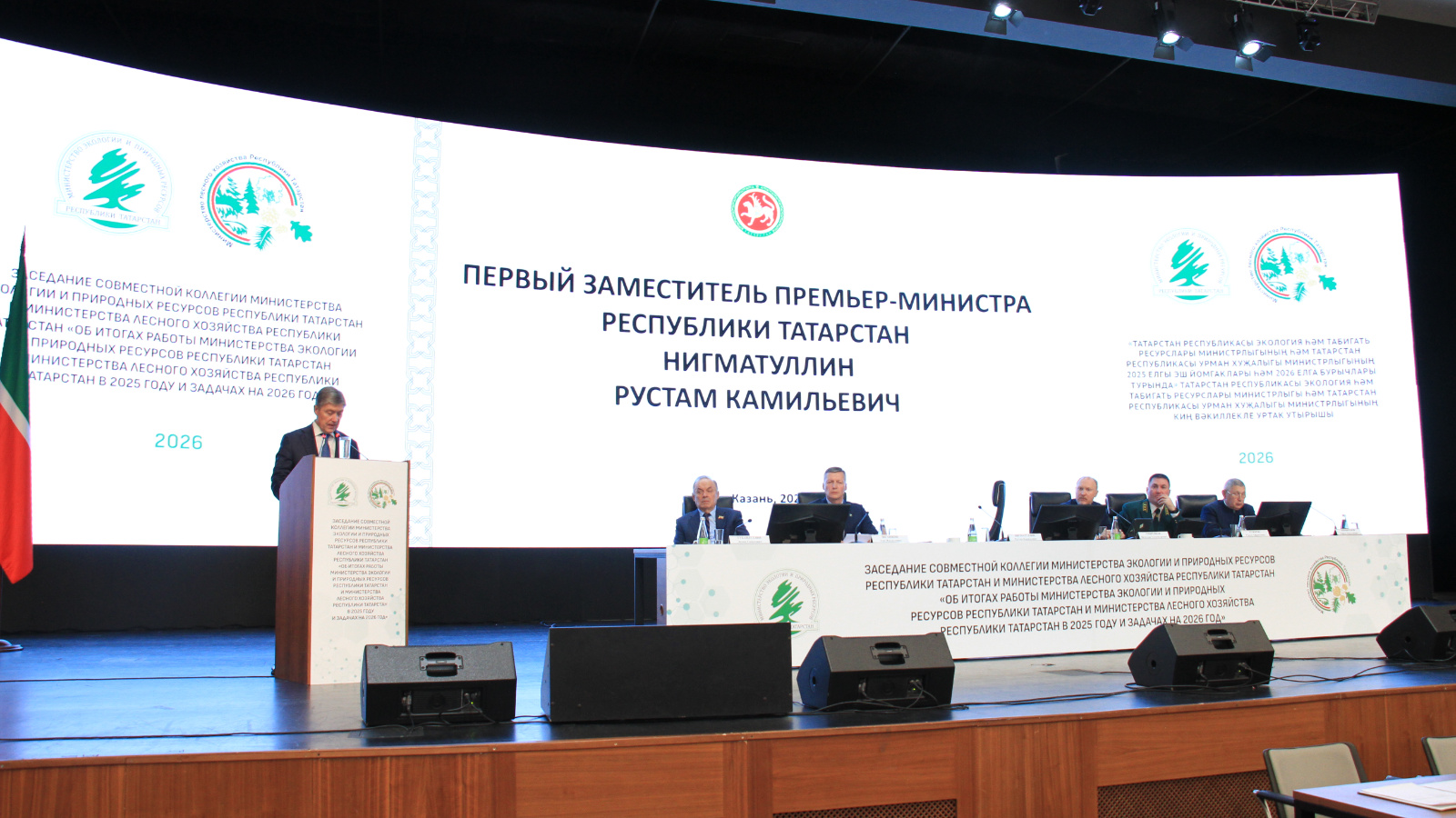 В Казани прошло заседание совместной коллегии Министерства экологии и природных ресурсов и Министерства лесного хозяйства Республики Татарстан. В конце заседания с заключительным словом выступил Первый заместитель Премьер-министра Республики Татарстан Рустам Камильевич Нигматуллин.