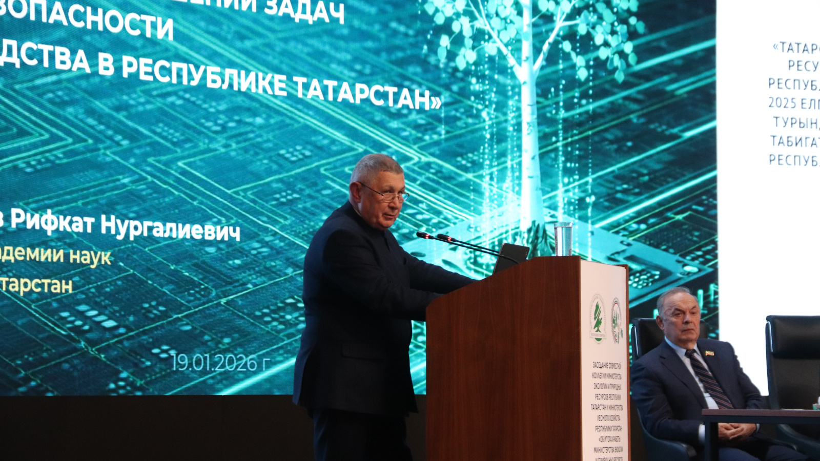 На совместной коллегии Минэкологии РТ и Минлесхоза РТ выступил президент Академии наук Республики Татарстан Рифкат Минниханов с докладом о научном обеспечении при решении задач экологической безопасности.