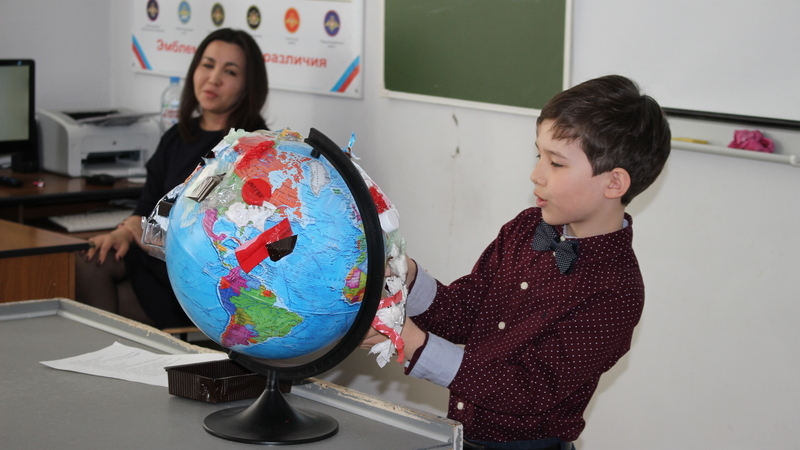 28 нче гимназиянең 4 сыйныфында укучы Диана Әхмәтова мастер-класста үзенең яшьтәшләрен тукымадан ЭКОбукчалар ясарга өйрәтте.