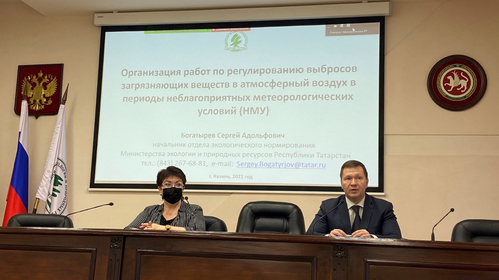 Начар һава шартлары булганда атмосфера һавасын пычрату дәрәҗәсен киметү буенча чаралар планын эшләү һәм аларны үтәүгә бәйле сорауларга Экологик куркынычсызлыкны тәэмин итү һәм экологик мониторинг идарәсе җитәкчесе Рәисә Шаһидуллина һәм экологик нормалаштыру бүлеге җитәкчесе Сергей Богатырев җавап бирде.