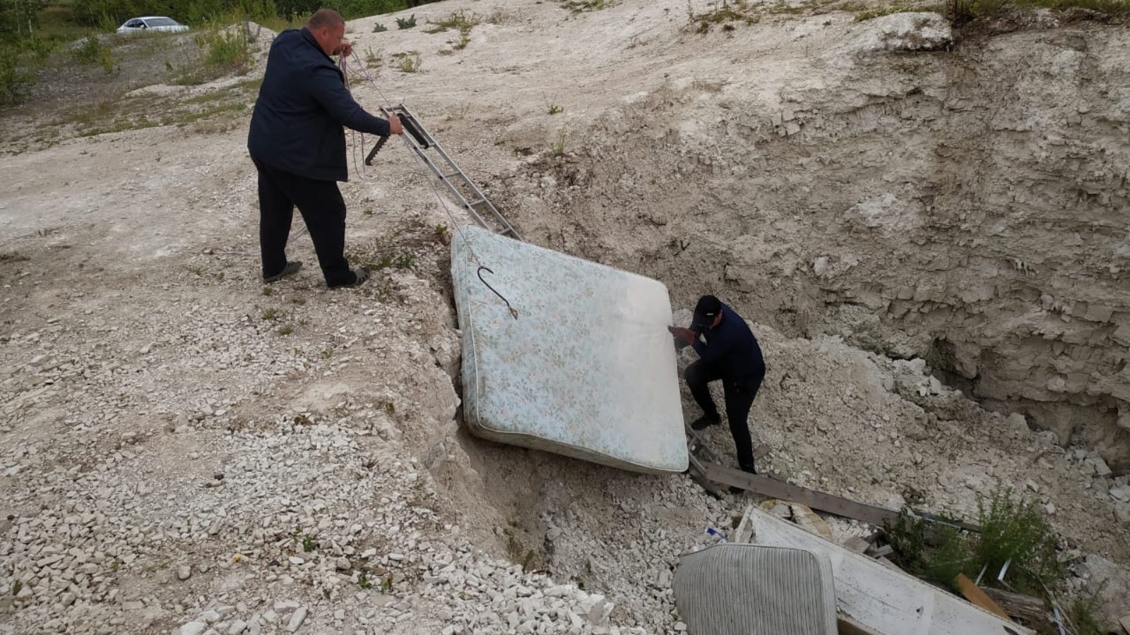 Бүген иртән эшчеләр Печище авылының карст чокырында җыелган чүп-чарны аралау эшенә керешкәннәр.